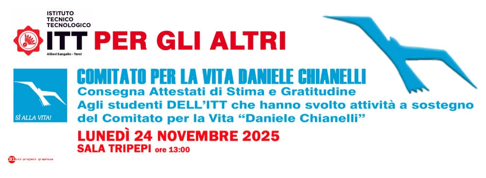 Consegna degli Attestati di Stima e Gratitudine agli studenti dell'ITT che hanno svolto attività a sostegno del Comitato per la Vita “Daniele Chianelli”.